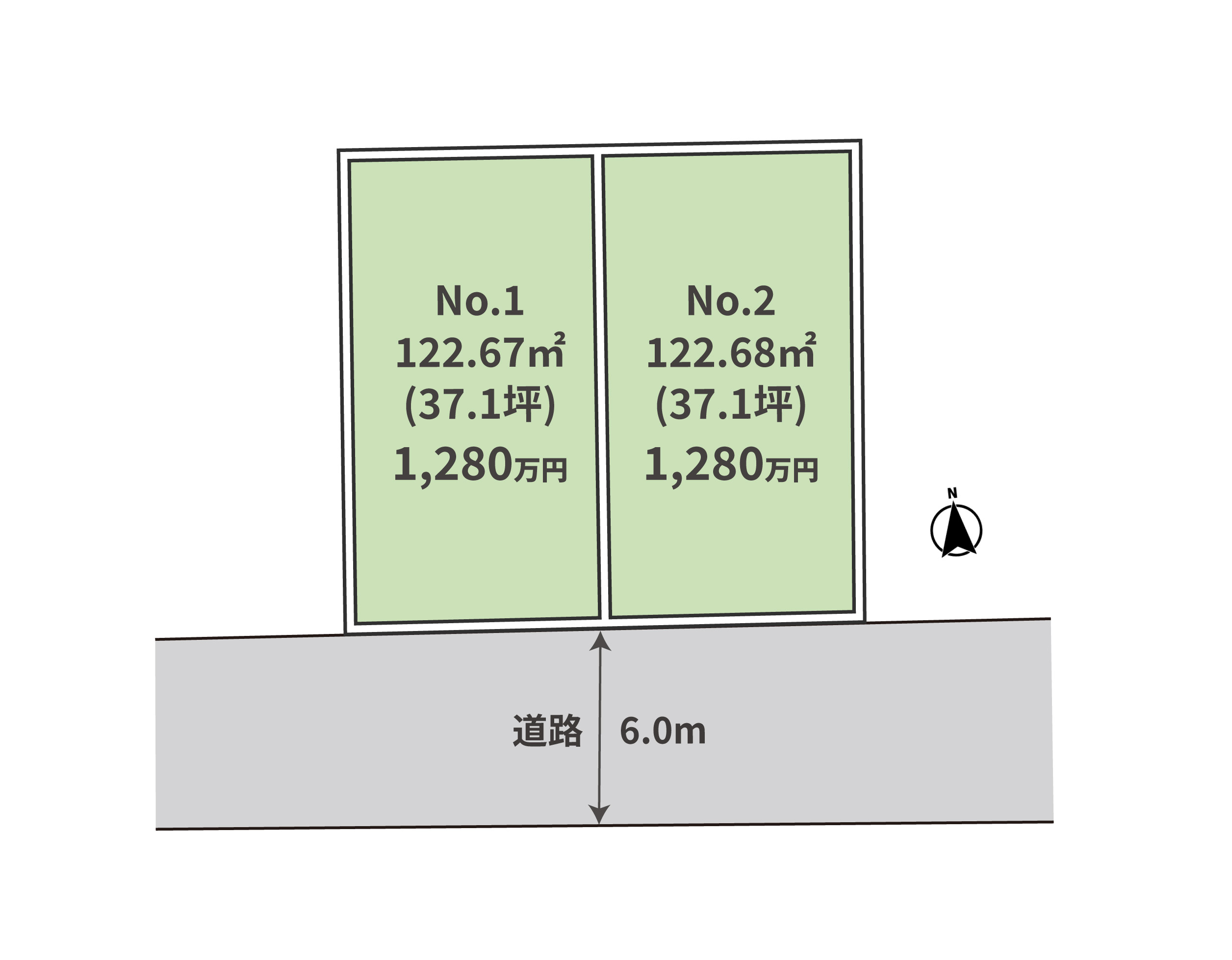 敷地:No.1/122.67㎡(37.1坪) No.2/122.68㎡(37.1坪)