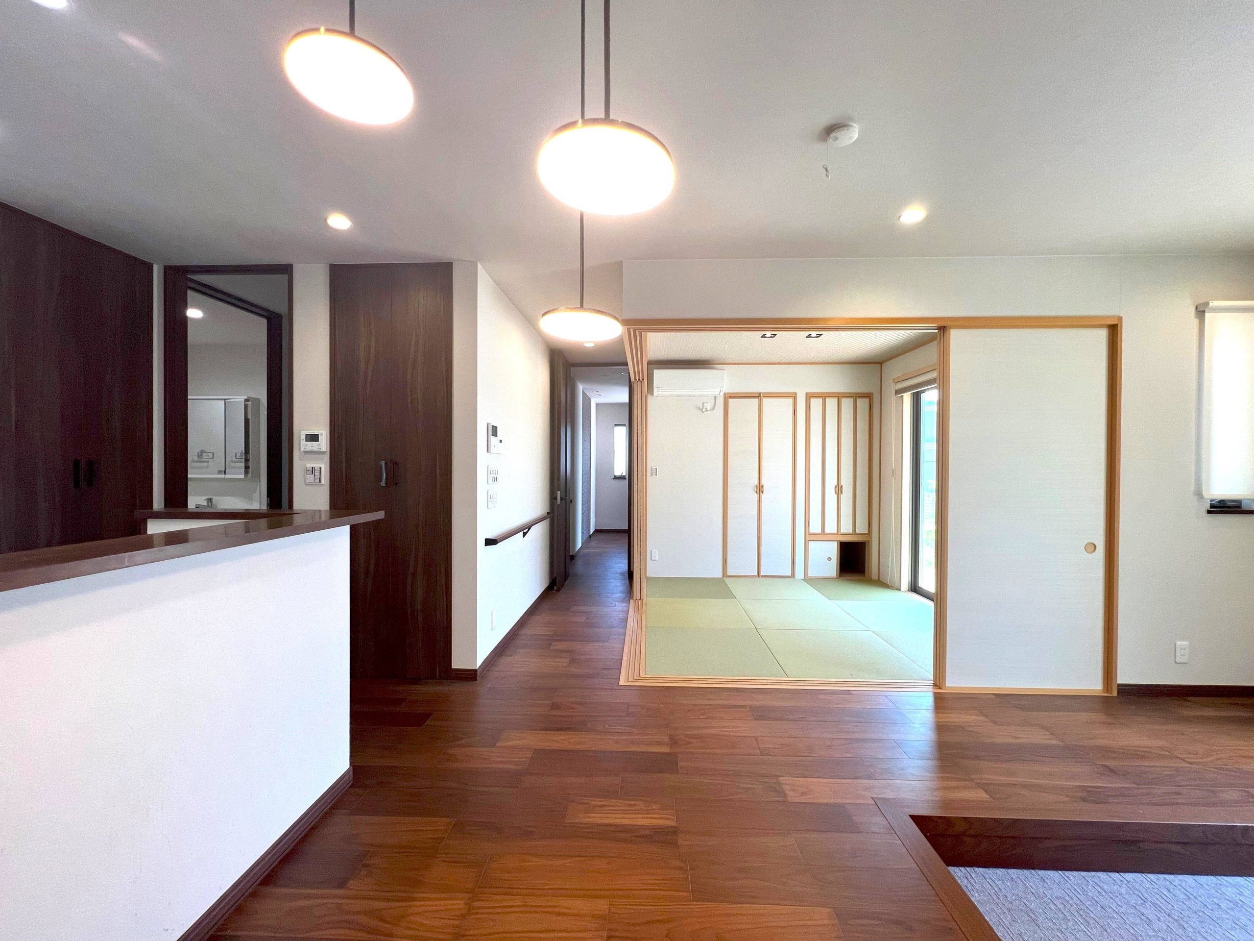 開放的なリビングに、癒しとやすらぎを感じる高級旅館のような和室がつながる優雅な間取り。